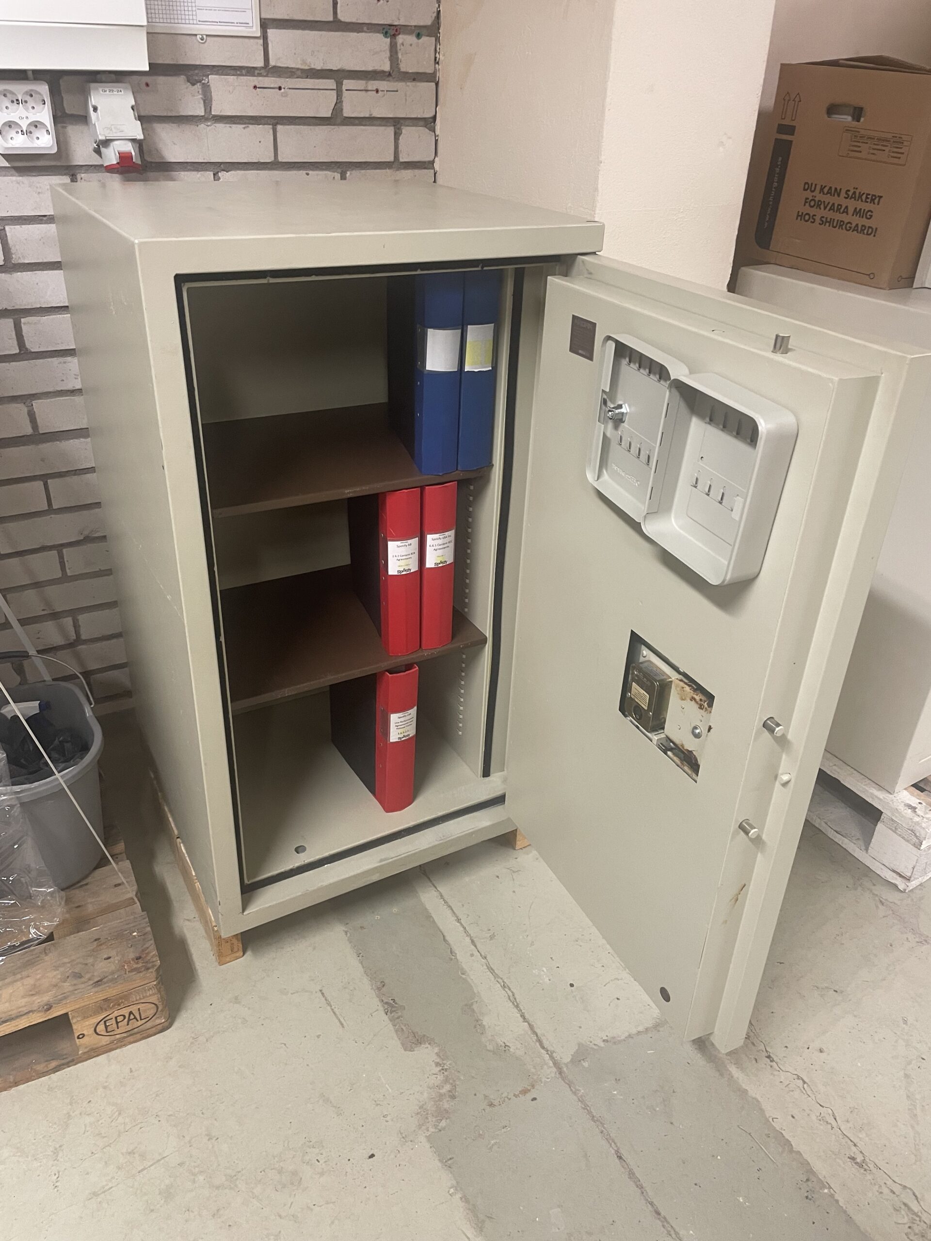 Alla våra begagnade skåp säljs med 1 års garanti. Skåpets alla rörliga delar som kan slitas är besiktigat av låssmed såsom regelverk, låskolvar och lås utan anmärkning.