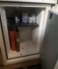 Mycket starkt kassaskåp / värdeskåp till bra pris. Godkänd kontantskydd 550.000 kr. utrustat med 2 stycken flyttbara hyllor, flera hyllor kan kanske ordna om det behövs. Pallvagn sockel för enklare intransport. Även godkänt för 40 stycken vapenpoäng, vi ordnar intyget ifrån en värdeskåps tekniker utan kostnad.